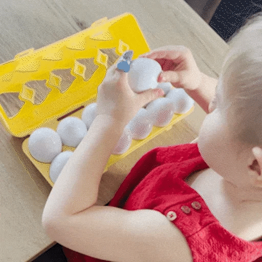 Al encajar los 12 huevos, observar los colores y las formas, y luego volver a colocarlos en su lugar, tu pequeño mejora sus habilidades motoras finas.